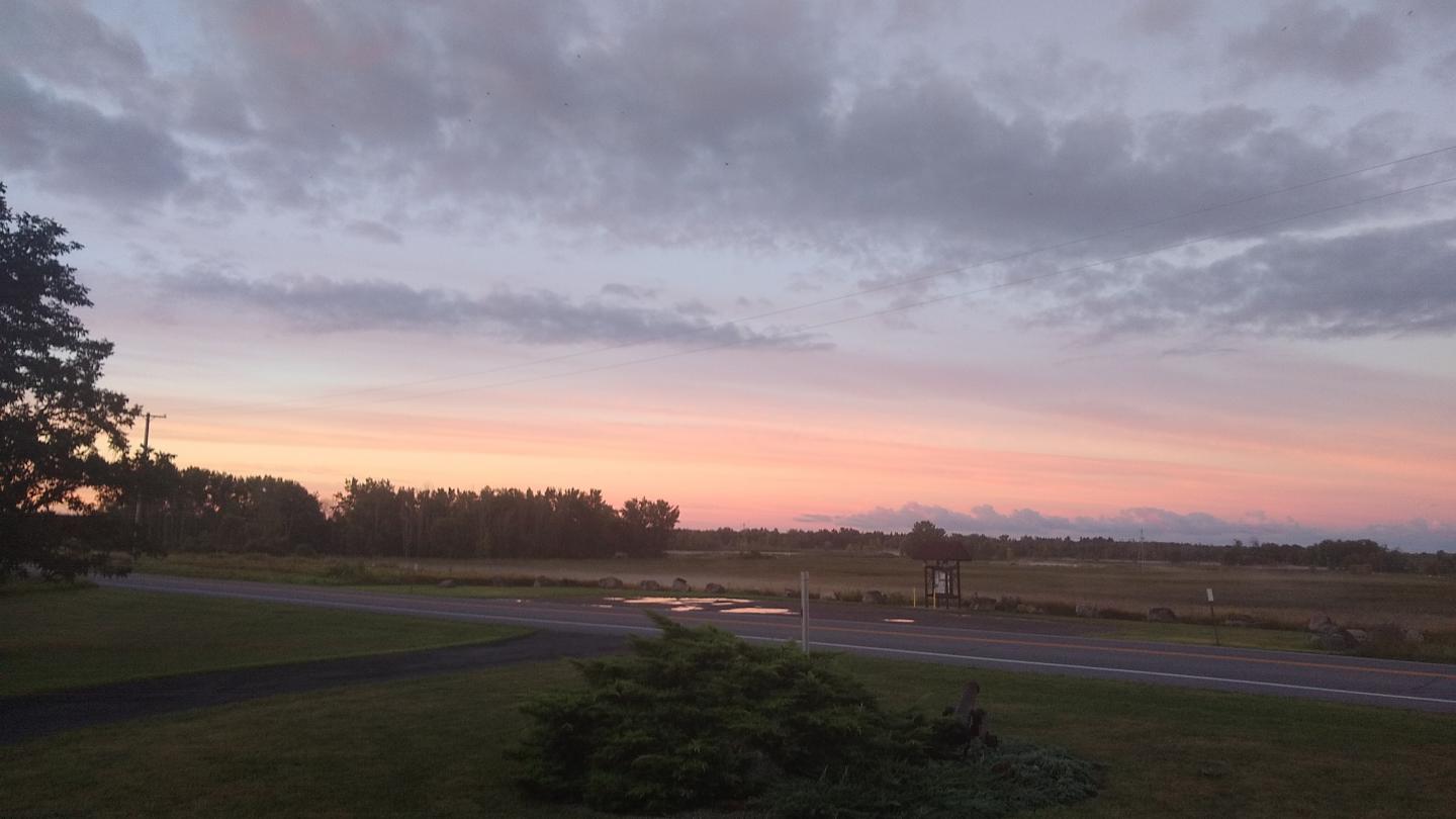 Now that I'm retired, I see a lot of sunsets, but not many sunrises. Pretty this morning , low layer of fog over the swamps.