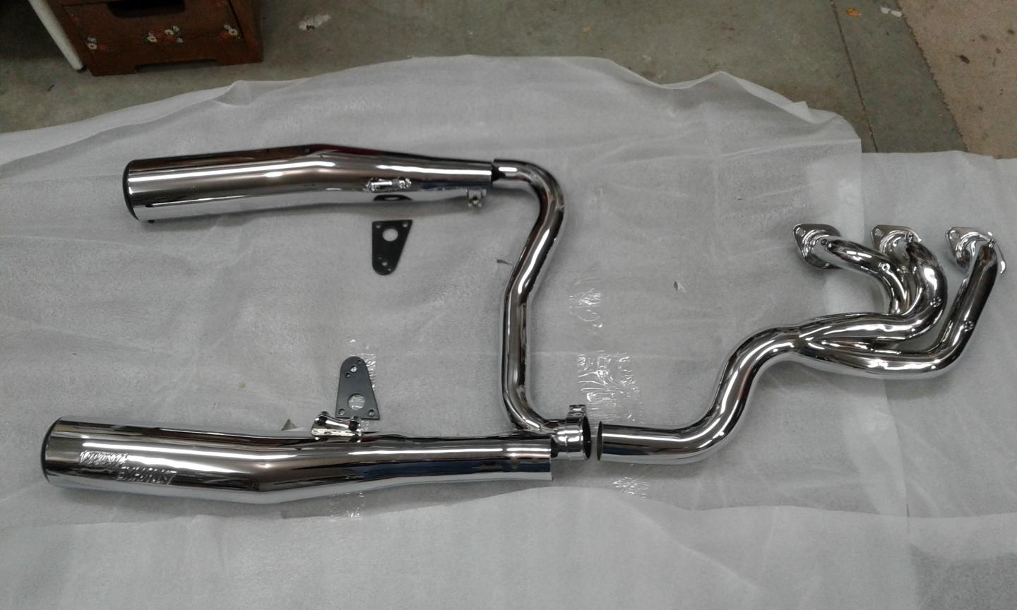 I received today my new chrome 3-1-2 Viking Exhaust system made by Paul Bryant. It is Paul's first 1 3/4" system he has made for the Rocket III.