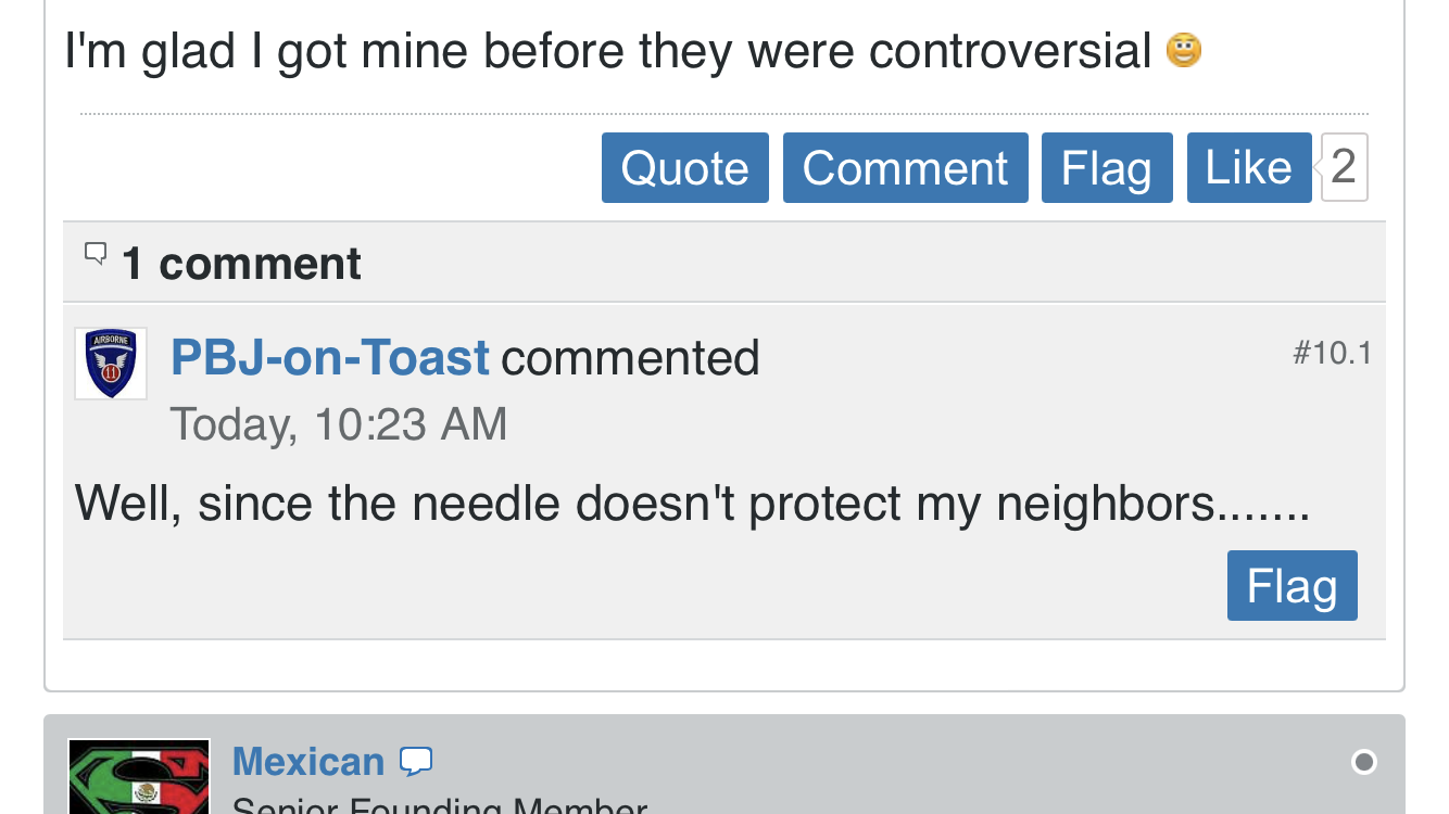 Well, since the needle doesn't protect my neighbors.......