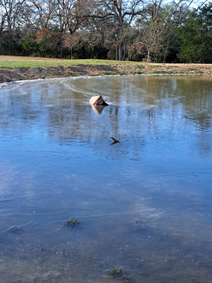 We had it yesterday with 40 mph winds. Looks like one of the neighborhood deer stand/huts wound up in one of my icy stock tanks.