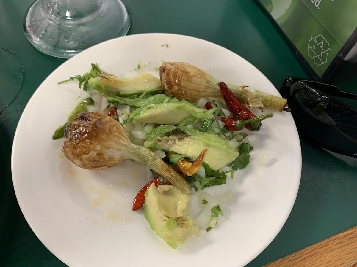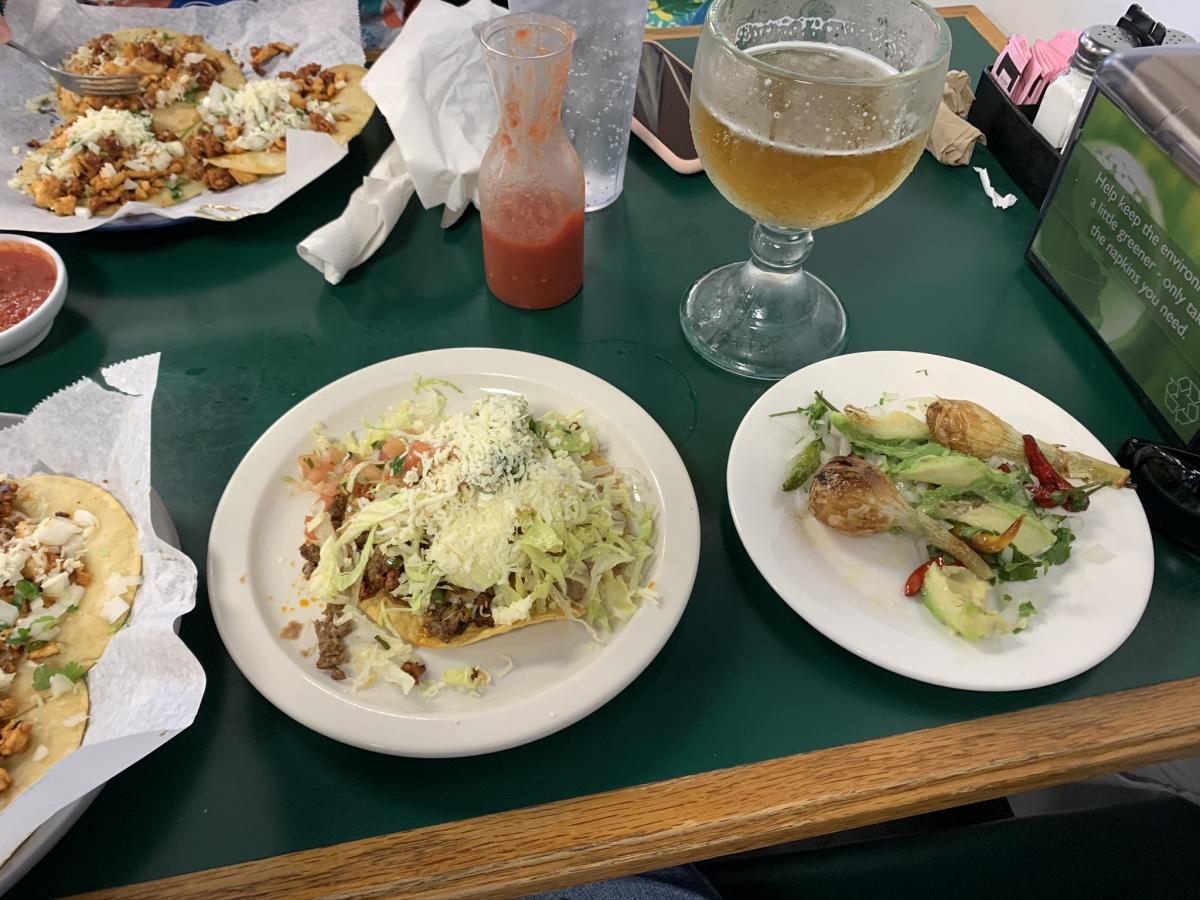 One of the spreads he put on for me one night. The red sauce on the left is made from roasted ants. The tacos are on the menu listed as “Dr.D Tacos” and are chicken and chorizo with grilled jalapeños, onions and cilantro topped with white cheddar. The small plate at the bottom is Chile’s toreados with Chile’s out of my garden that they fix for me.